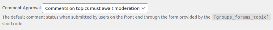 Control how comment approval works for topics. Choose one: