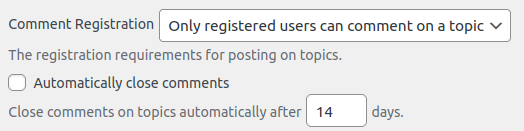 Choose to close comments on topics automatically after the specified amount of days (by default in 14 days).