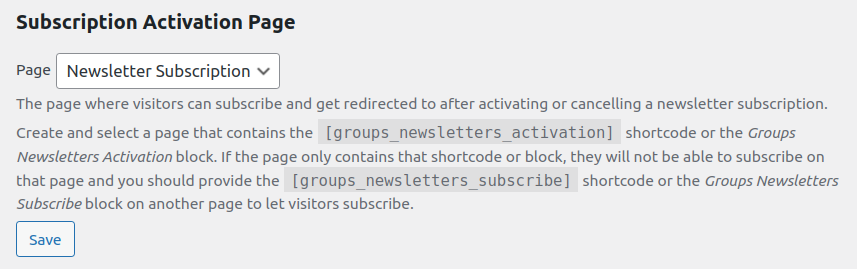 It is advisable to create this page where visitors can subscribe. After activating or cancelling a newsletter subscription, visitors will be redirected to this page.